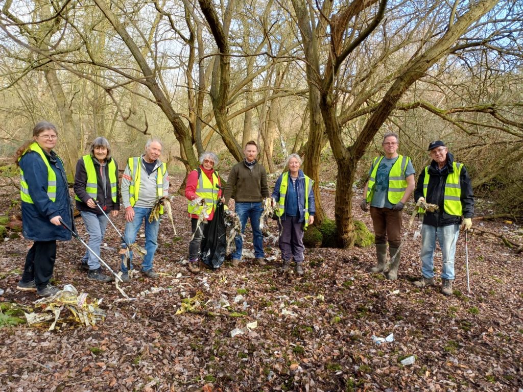 March 2026: 2 Nature Reserve Action Days: on the first day, about 50 bags of litter were picked along with a pile of metal. Paths were also cleared at this site which is being developed as a nature reserve for locals to enjoy and also supporting wildlife. On the 2nd day, a whole circuit of the wood was cleared and lots of bulky metal removed.