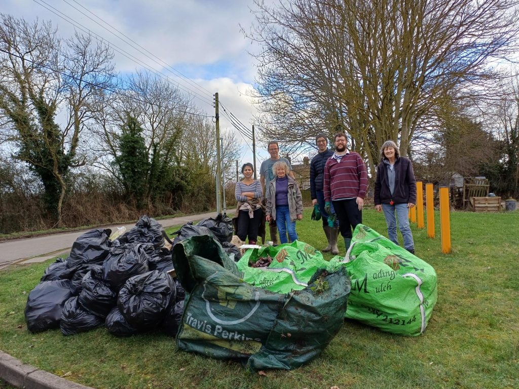 February 2024: clearing away fallen trees by the bus stop and clearing vegetation on the corner of Church Street and Haslingfield Road.